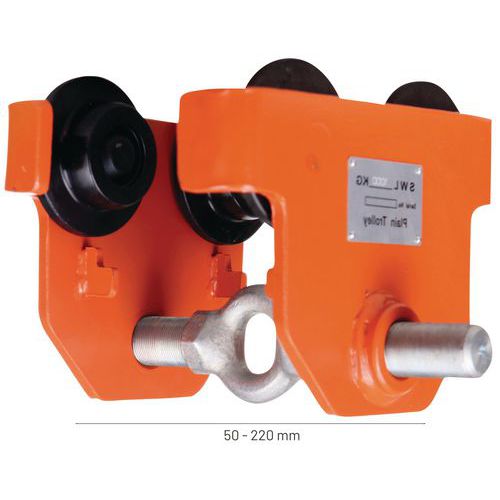 Chariot porte-palan, Force: 500 kg, Fer largeur mini: 50 mm, Fer largeur maxi: 220 mm, Pour palan: Manuel
