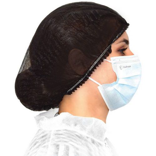 - Charlotte ronde et noire pour cheveux en polypropylène non tissé, sans latex.