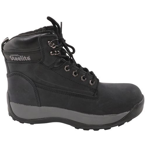 Chaussures de sécurité brodequin constructo S3 HRO noir semelle en caoutchouc. Intercalaire et embout en acier. Etanche.