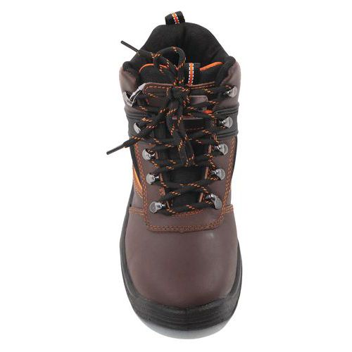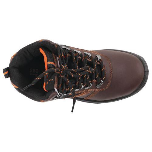 Chaussures de sécurité brodequin mustang steelite S3 marron fiable. Avec un système en caoutchouc intégré. Idéales dans le BTP.