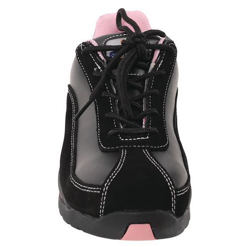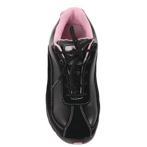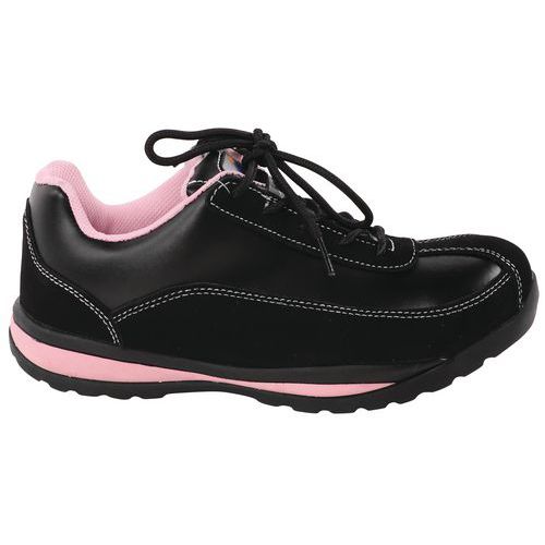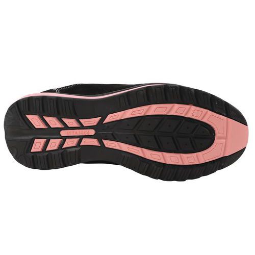 Chaussures de sécurité femme S1P HRO noir rose très pratique. Coquille acier. Chaussures antistatiques. Semelle EVA/Caoutchouc pour plus de confort et de résistance. Certifié CE.
