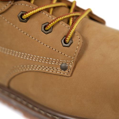 Chaussure de sécurité pour hommes, haute pour une protection des malléoles optimale. Antidérapante, antistatique, hydrofuge, anti-perforation. Travaillez en toute sécurité grâce à ses crampons, une absorption des chocs du talon et une coque de protection. Possède 2 crochets pour un laçage rapide. Tige en cuir nubuck résistant à l’eau. Col matelassé pour un meilleur confort.