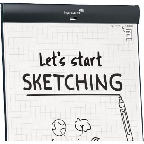Contenu du colis : 1 Legamaster Sketch Pro chevalet de conférence mobile pied étoile, 1 Legamaster Sketch Eco bloc-papier grille 1x 20 feuilles, 2 Edding 31 Eco Line marqueur pour chevalets noir, 1 porte-marqueurs, 2 bras latéral extensible.
