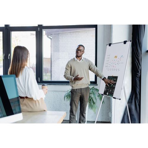 Écrivez sur un bloc de papier pour chevalet de conférence ou directement sur le tableau blanc qui peut être utilisé en position portrait ou paysage.