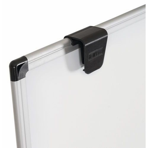 Comprend des crochets réglables pour blocs de papier pour chevalets et un plateau auget en plastique pour accessoires à l'arrière du tableau.