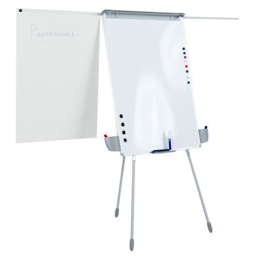 Chevalet paperboard magnétique, acier laqué gris et effaçable à sec.