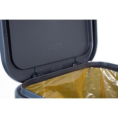 Équipée d'un couvercle à clapet pour garder les odeurs à l'intérieur.
