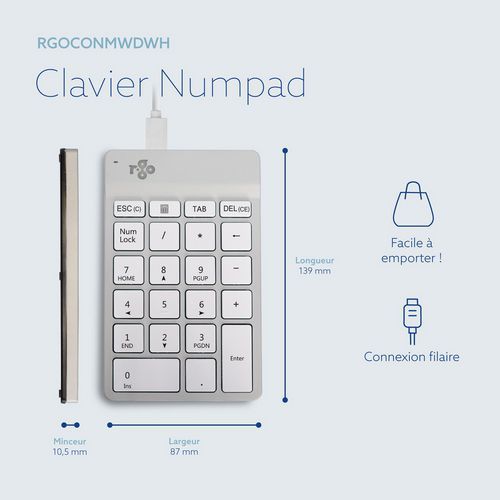Clavier numérique sans fil Numpad Break bluetooth - Blanc - R-Go Tools