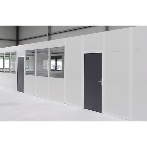 Cloison double paroi tôle d'acier mélaminé - Panneau vitré (8 mm) - Hauteur 2,50 m