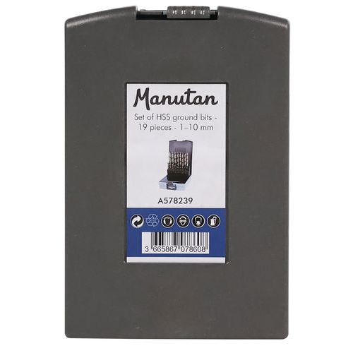 Coffret 19 forets cylindriques HSS taillés meulés - Manutan Expert