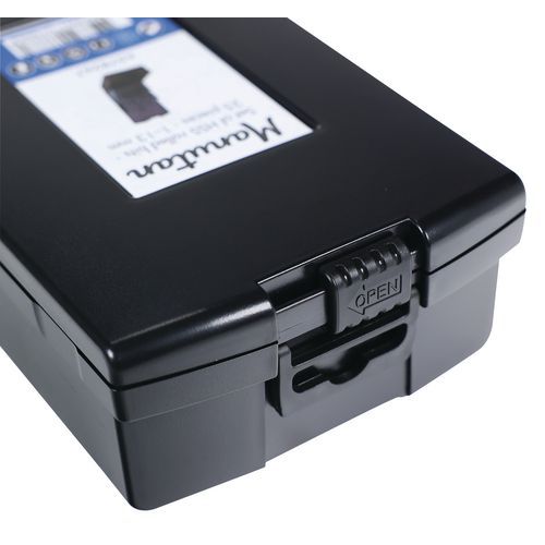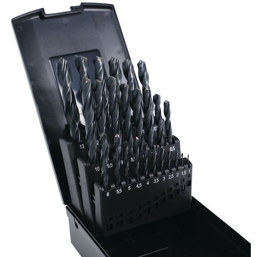 - Coffret de 25 forets standards à queue cylindrique laminé en acier rapide HSS Ø 1 à 13 mm.