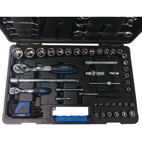 | Intitulé du produit | Coffret 62 outils, Nb d'outils: 62, Longueur: 430 mm, Largeur: 270 mm, Hauteur: 85 mm |