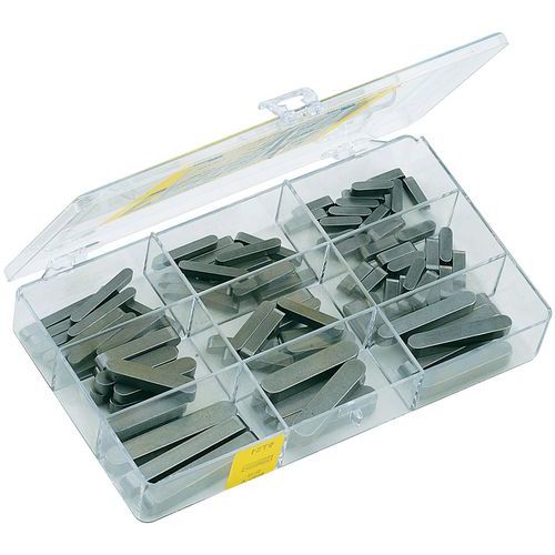| Intitulé du produit | Coffret de clavettes parallèles assorties, Nb de pièces: 90, Matériau: Acier, Nb de cases: 9 |