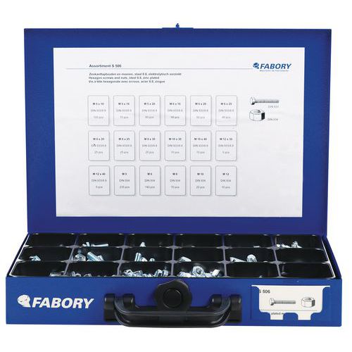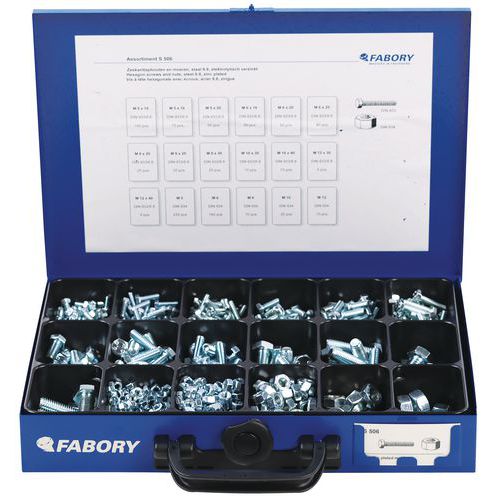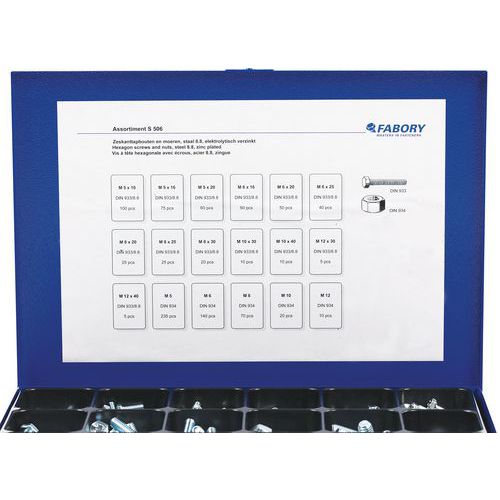 | Intitulé du produit | Coffret métallique vis à tête hexagonale avec écrous, Matériau: Acier, Nb de pièces: 950 |