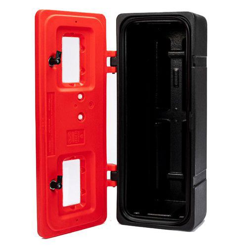 Coffret pour extincteur 6 à 12 kg avec fermeture à clef, Matériau: Polyéthylène, Coloris: Rouge/noir