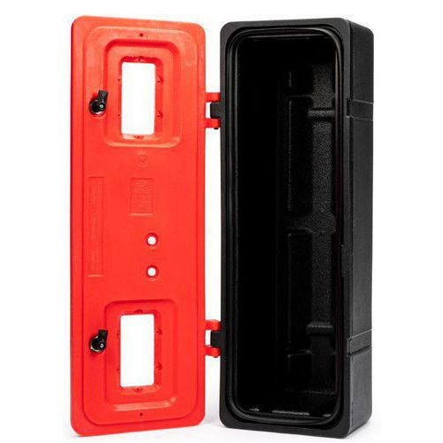 Coffret pour extincteur 6 à 12 kg avec fermeture à clef, Matériau: Polyéthylène, Coloris: Rouge/noir