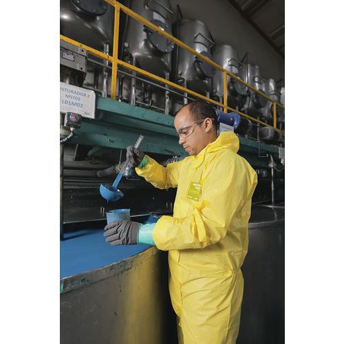 Protège contre divers produits chimiques inorganiques y compris les acides et les bases, tout en restant durable, légère et flexible.