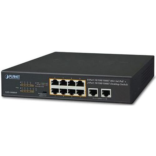 | Intitulé du produit | Commutateur Planet GSD-1008HP 10 10P gigabit dont 8 PoE+ 120W, Nb de ports: 10, Réf. Fabricant: 411408 |