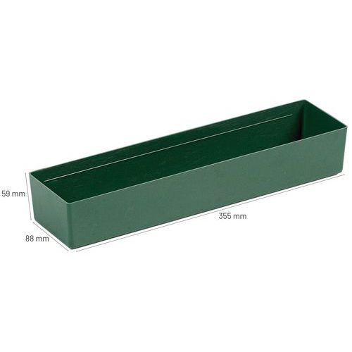 Compartiments amovibles verts de formats divers pour différents modèles de blocs-tiroirs. Créez un espace de rangement clair pour tout votre matériel et toutes vos pièces.