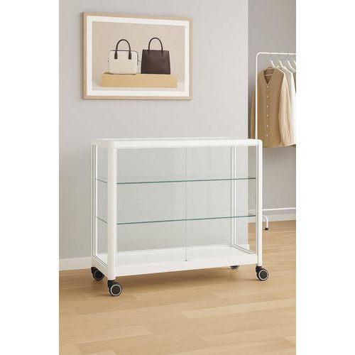 | Intitulé du produit | Comptoir exposition sur roulettes, Socle coloris: Blanc, Hauteur: 105 cm, Largeur: 100 cm, Profondeur: 50 cm |