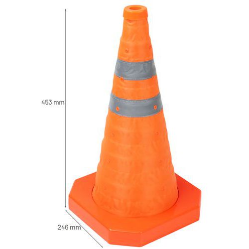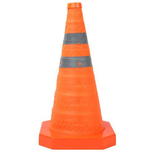 - Cône de balisage nylon rétractable avec bandes réfléchissantes.