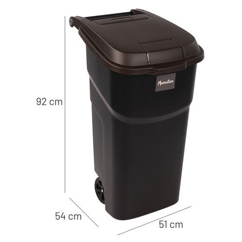 | Intitulé du produit | Conteneur avec couvercle marron 100L – Manutan Expert, Capacité: 100 L, Ouverture: Frontale |