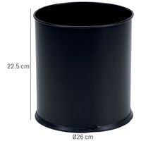 Corbeille à papier métal Noir, Capacité: 8 L, Ouverture: Sans couvercle