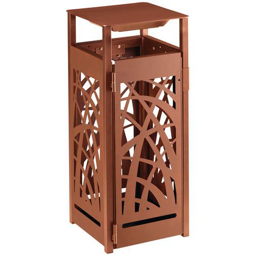 - Fixation au sol en 4 points ou à poser Robustesse, excellente tenue à la corrosion Esthétique : métal ajouré Corbeillle ajourée