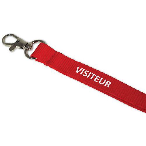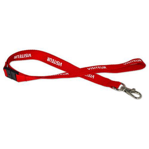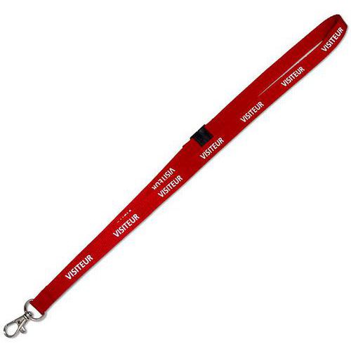 | Intitulé du produit | Cordon tour de cou sécurisé plat pré-imprimé Visiteur, Coloris: Rouge, Longueur: 900 mm, Largeur: 120 mm |