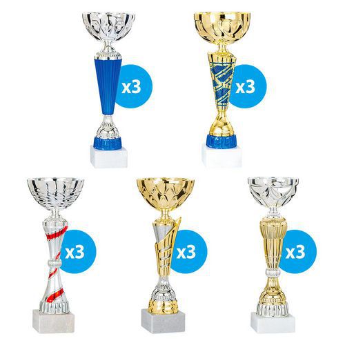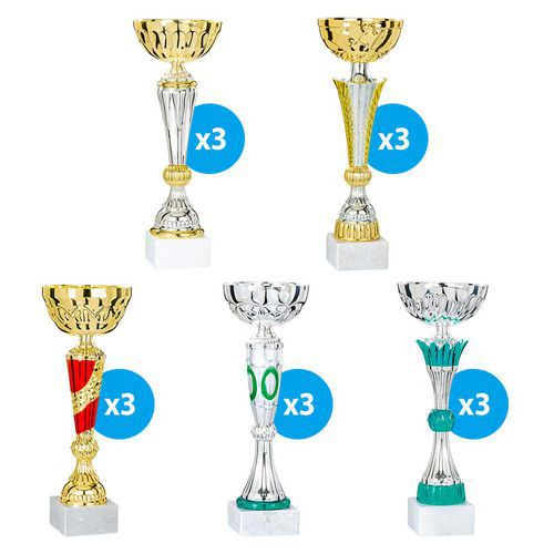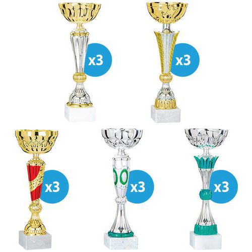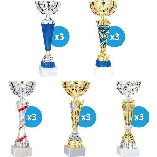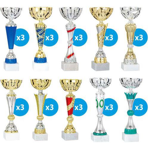 | Intitulé du produit | Coupes argent et or, Discipline sportive: Multisport, Hauteur: 33 cm, Récompense sportive coloris: Or/argent |