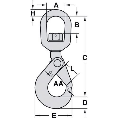 Crochet de sécurité à verrouillage automatique à émerillon, CMU: 8000 kg, Hauteur hors tout: 410 mm