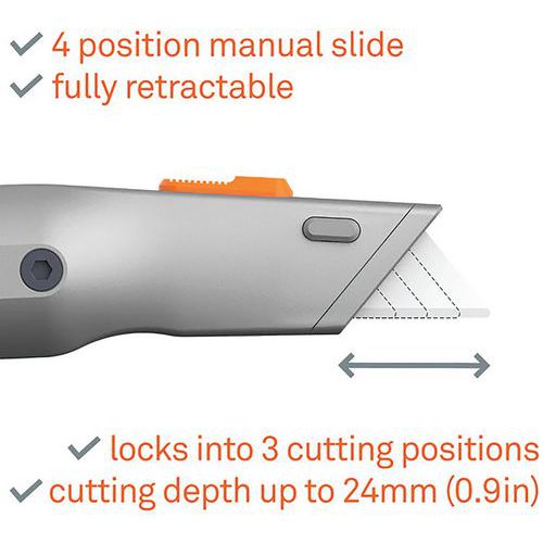 Cutter manche en métal avec lame auto rétactable, Lame rétractable: oui, Coloris: Orange/gris