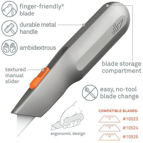 - Les lames Slice durent jusqu'à 11 fois plus longtemps que les lames en métal, ce qui fait de ce couteau un choix fiable et durable.