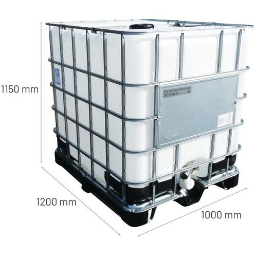 | Intitulé du produit | Cuve de transport 1000L unicube standard + palette, Capacité: 1000 L, Hauteur hors tout: 1150 mm |