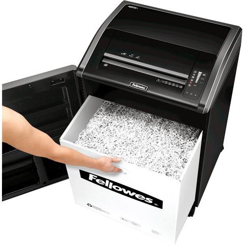 - Destructeur de documents possédant une corbeille extractible facilitant l'entretien.