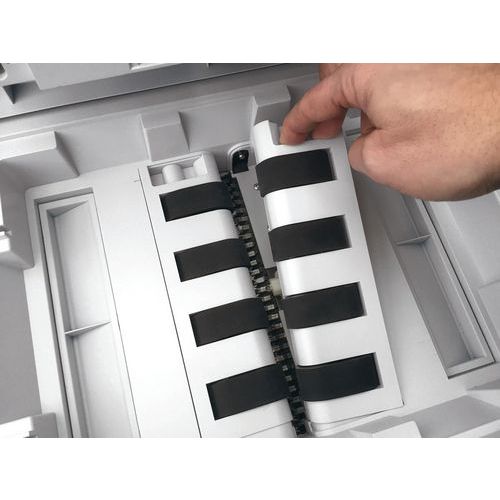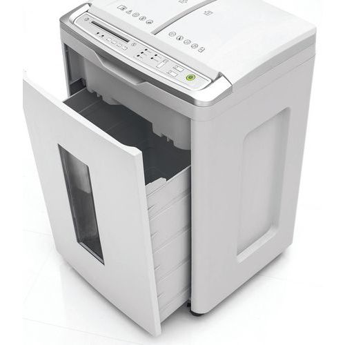 - Destructeur de documentséquipé d’un système d’alimentation automatique pour des liasses jusqu’à 300 feuilles.