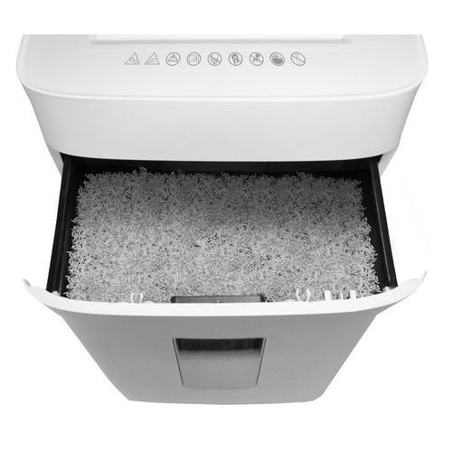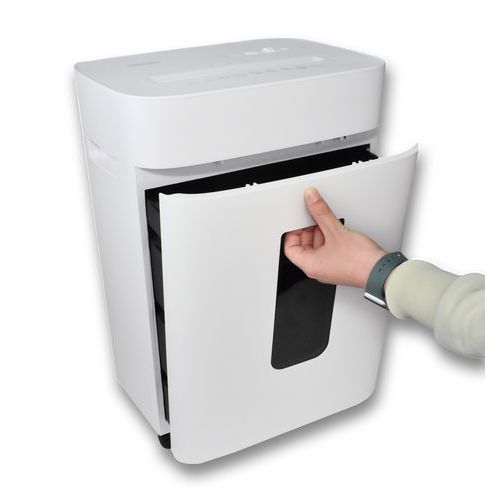 Grand collecteur de déchets extractible pour 650 feuilles de papier A4 détruites.