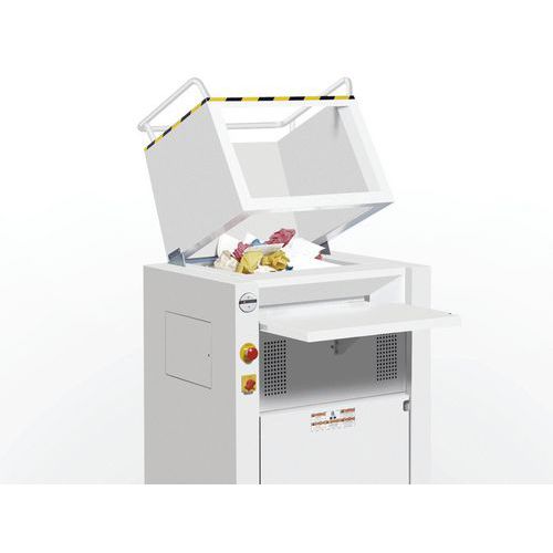 - Destructeur avec entonnoir rabattable : vidage des corbeilles facilité.