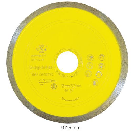 | Intitulé du produit | Disque à tronçonner carrelage, Alésage Ø: 22.23 mm, Ø: 125 mm, Pour matériau: Carrelage, Usage: Coupe |