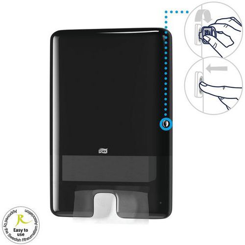 Distributeur d'essuie-mains enchevêtrés Tork, Coloris: Noir, Hauteur: 444 mm, Largeur: 302 mm