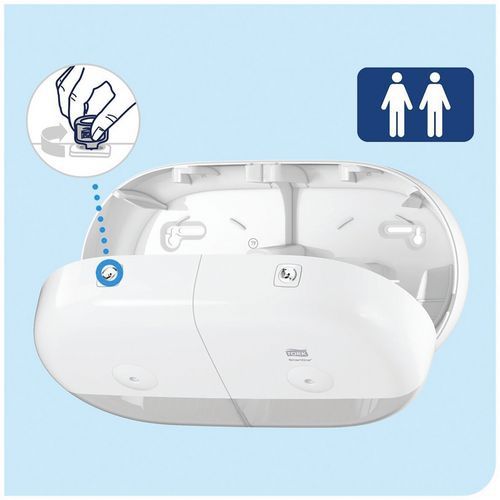 | Intitulé du produit | Distributeur double Tork T9, Coloris: Blanc, Hauteur: 22.1 cm, Largeur: 39.8 cm, Profondeur: 15.6 cm |