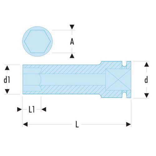 Douilles impact 1/2 longues 6 pans métriques, Nb de pans: 6, Réf. Fabricant: NS.27LA