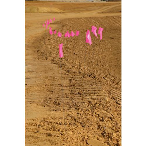 Drapeaux de repérage, visibles, légers et faciles à transporter. Un complément parfait du traceur de chantier Trig-a-Cap. 2 Tailles disponibles : 76 cm et 53 cm. 7 couleurs disponibles.