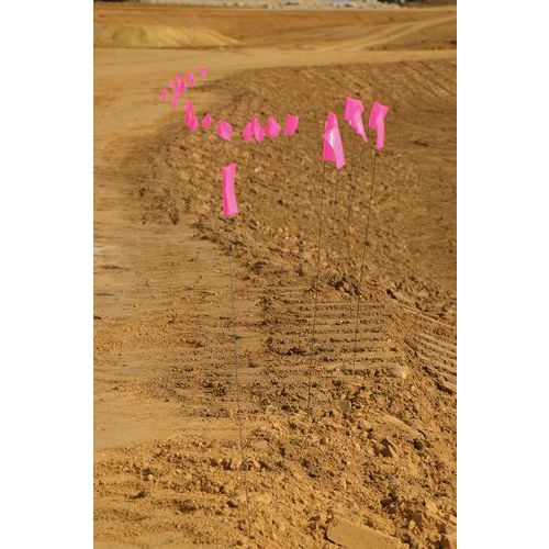 Drapeaux de repérage, visibles, légers et faciles à transporter. Un complément parfait du traceur de chantier Trig-a-Cap. 2 Tailles disponibles : 76 cm et 53 cm. 7 couleurs disponibles. Tige en métal et fanion en plastique. Fabriqué en UE