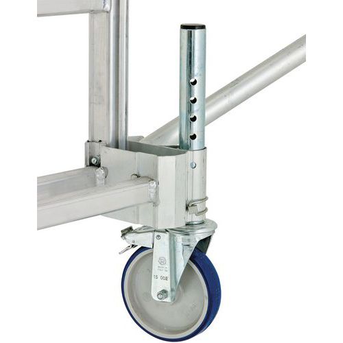 Échafaudage roulant, compact et télescopique formé d'une pièce. Système d'accès en hauteur innovant, très résistant, polyvalent. Déploiement et installation très simple et ultra-rapide (3 minutes). Encombrement réduit pour transport aisé avec un petit utilitaire. Roues de grand Ø réglables en hauteur avec système de blocage. Produit fabriqué en France.