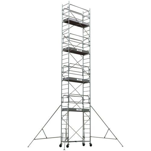 Échafaudage roulant Generis 750 en acier galvanisé soudé avec large surface de plancher. Structure de grande stabilité, offrant un excellent confort de travail à l'extérieur et à l'intérieur. Roues réglables de grand diamètre pour ajustement parfait sur toute surface y compris encombrée. Montage 1 seule personne simplifiée et en toute sécurité avec la base en croix monobloc pliante. Planchers bac avec plinthes intégrées et poignées de préhension pour faciliter la mise en place.