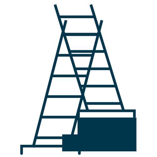 L'échafaudage Multi Brico offre une grande polyvalence : l'association échafaudage / échelle en un seul produit, utilisable sur sol plat ou en décalage de niveau !.