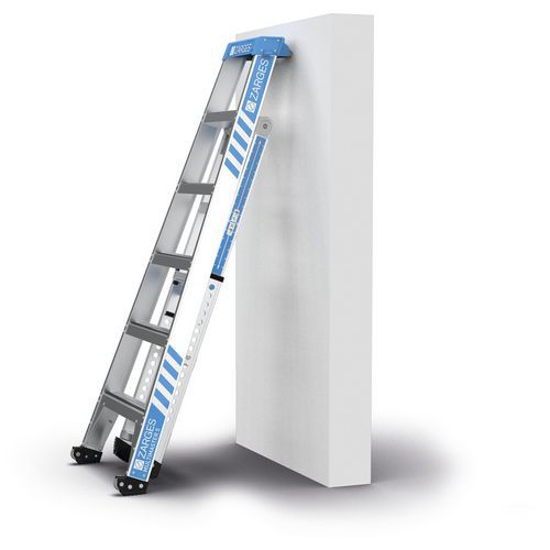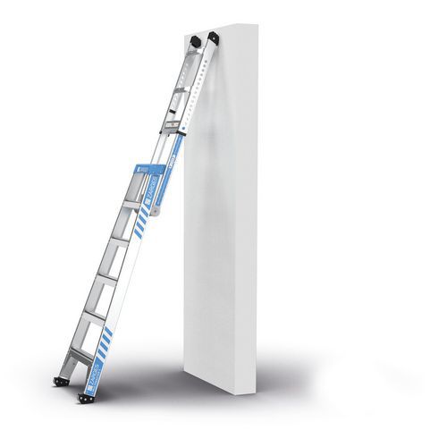 A la fois échelle double, échelle double utilisable dans les escaliers, échelle simple en mode offset, échelle simple et échelle simple déployée.