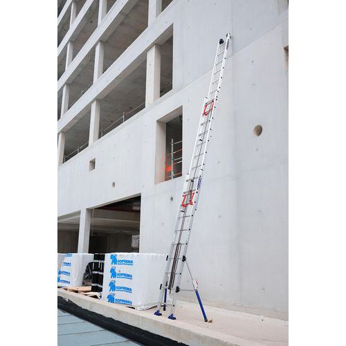 - Échelle coulissante 3 plans à corde avec stabilisateurs rabattables à réglage millimétrique.