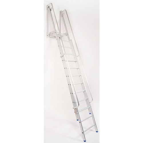 Echelle d'accès avec garde-corps, base télescopique, échelle pliable et structure en aluminium